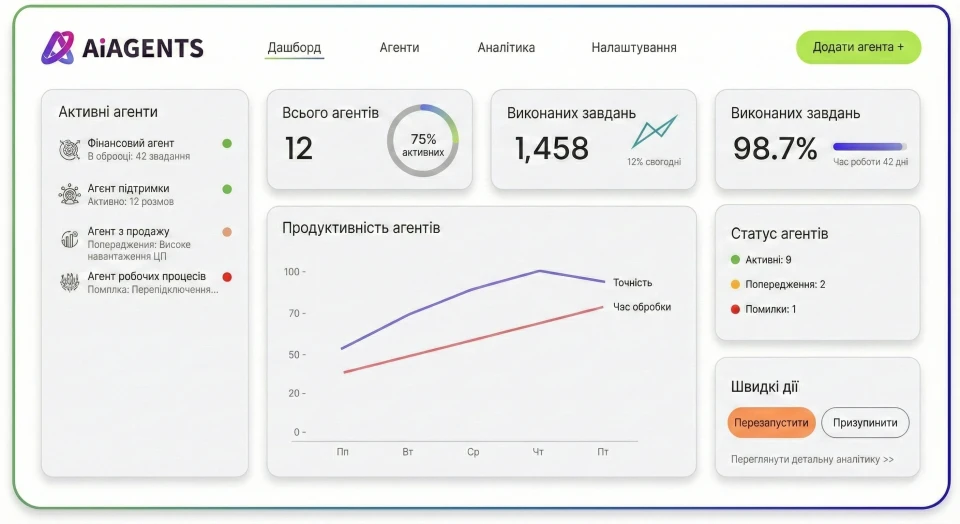 Ми в AiAgents не просто впроваджуємо штучний інтелект — ми робимо його керованим, прозорим та прибутковим для вашого бізнесу.